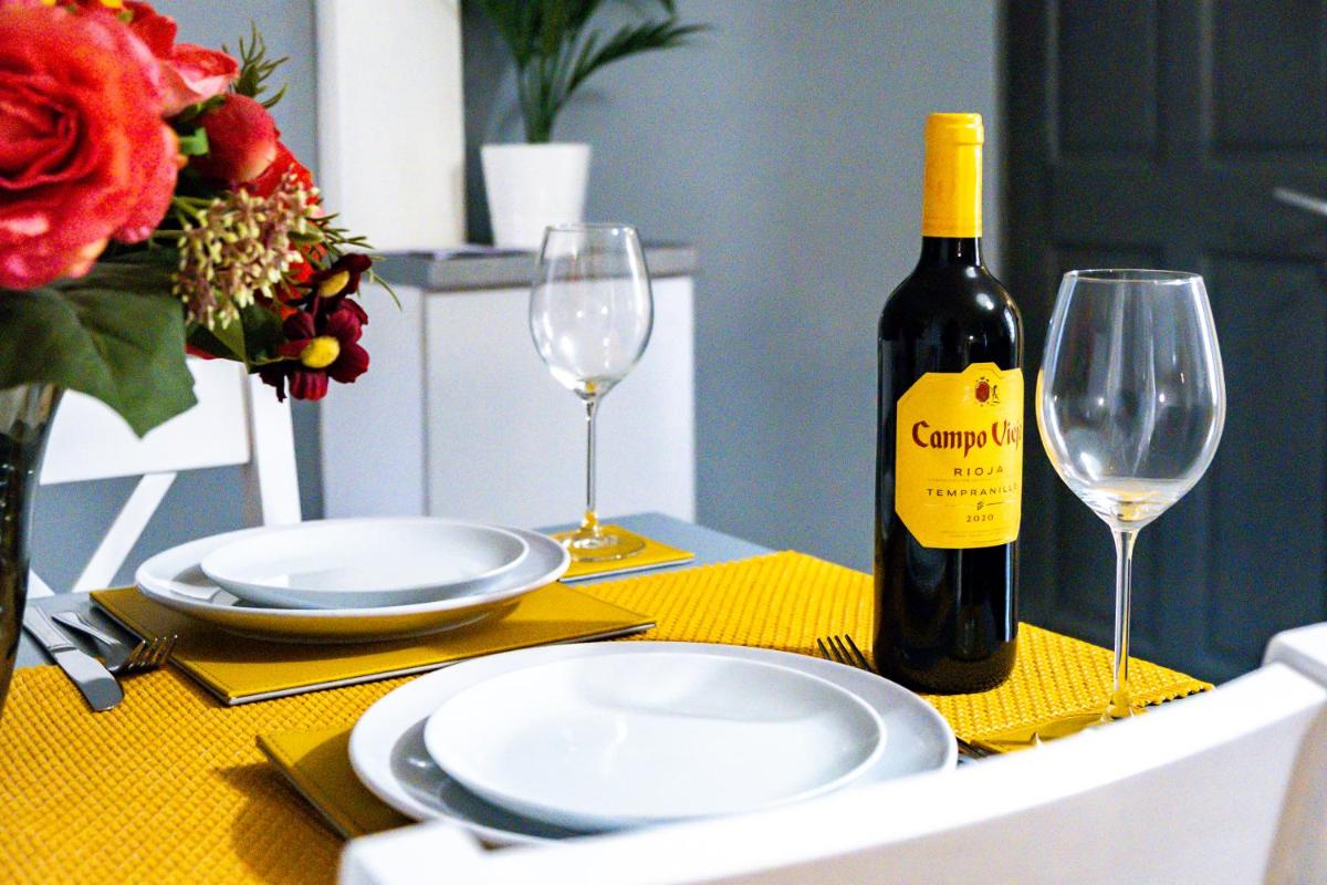 O apartamento foi apresentado limpo, era um apartamento muito adorável e confortável. A cozinha era um bônus adorável, em vez de ficar em um hotel . . . .