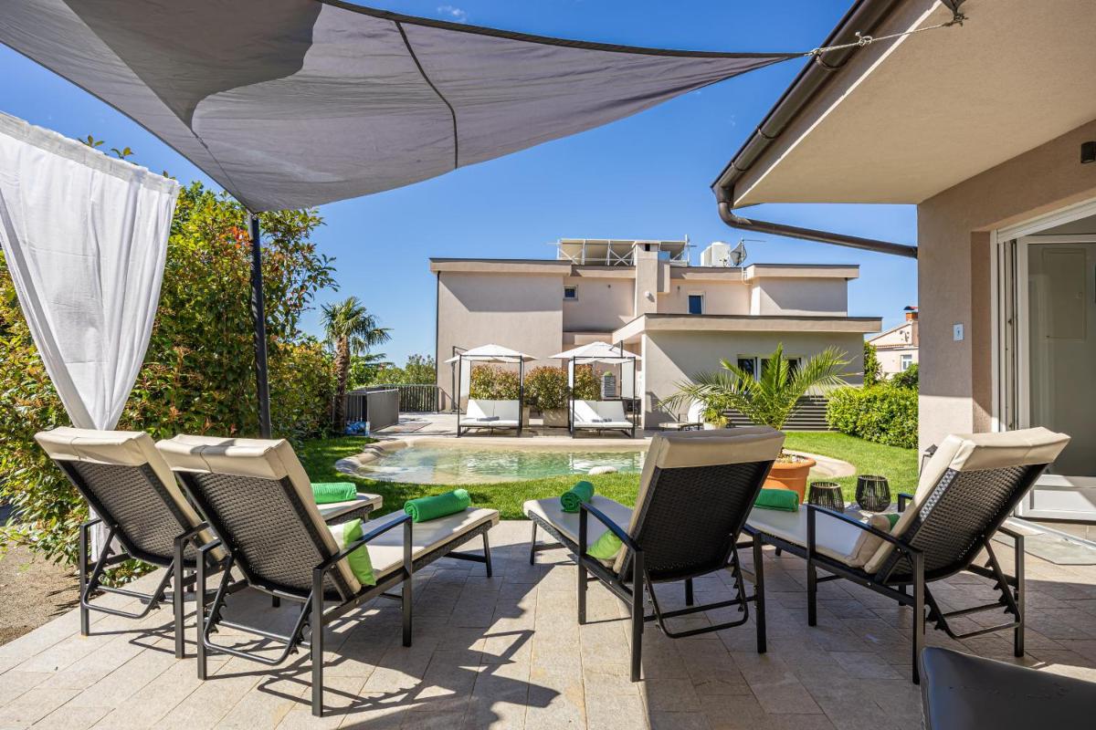 Eu realmente gostei da área de bem -estar e da piscina no jardim.