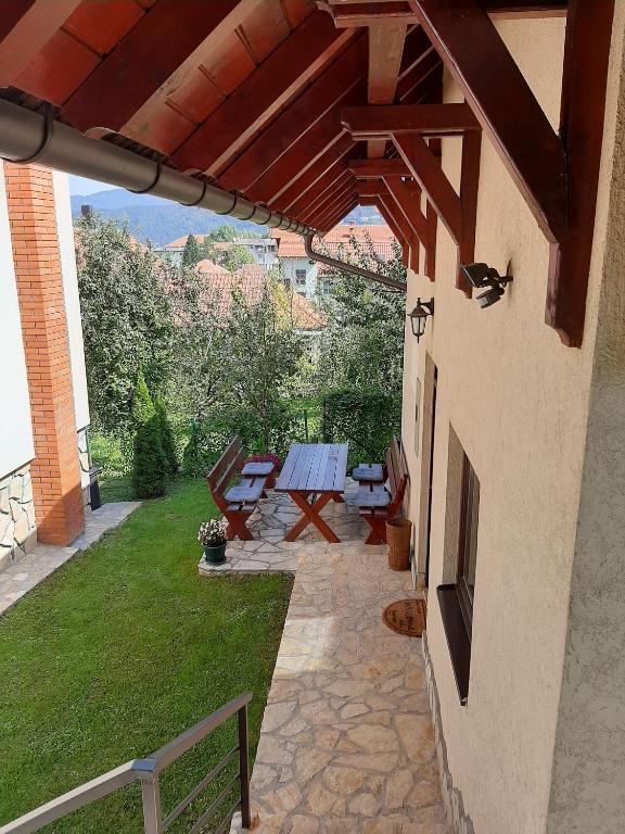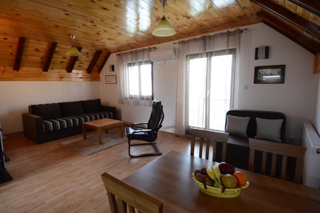 Apartmani Ogi I Ana em Bajina Bašta, com vistas internas do pátio, oferece acomodações luxuosas com acesso privado para facilitar a permanência. Este apartamento apresenta comodidades modernas, incluindo ar condicionado, estacionamento privado gratuito e Wi-Fi de cortesia. Os quartos vêm completos com lençóis de pelúcia, toalhas e equipamentos de cozinha essenciais, como geladeira, fogão e utensílios. A unidade inclui uma área de estar, TV de tela plana com canais a cabo e uma cozinha totalmente equipada. Os hóspedes desfrutam de um terraço ao ar livre convidativo, proporcionando amplo espaço para relaxar. Convenientemente localizado perto do aeroporto de Morava, a aproximadamente 73 km de distância, esta propriedade atende a casais que buscam um retiro confortável. Sua alta classificação de 9,8 em 10 ressalta seu apelo excepcional para viagens curtas.