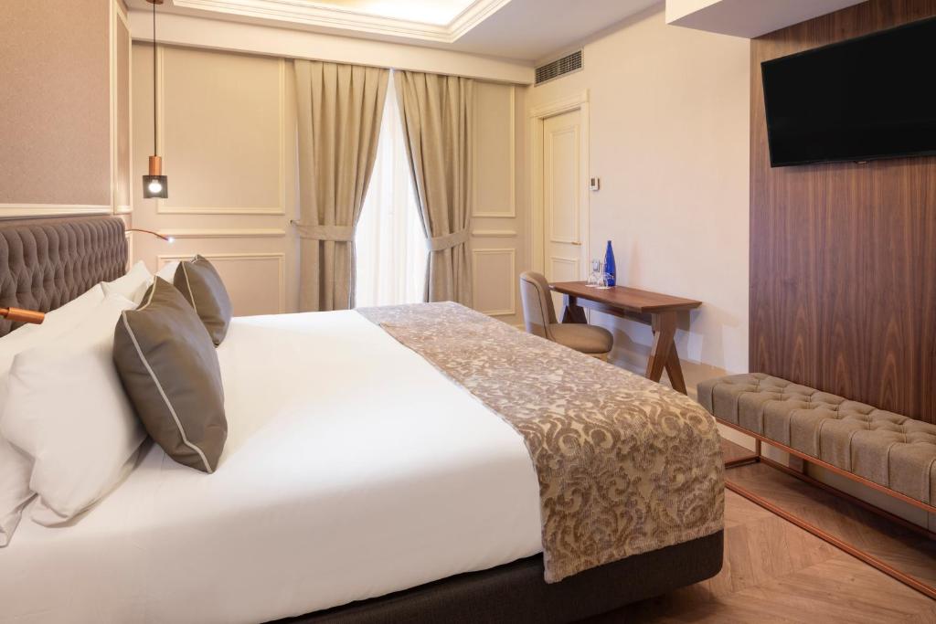 A propriedade apresenta uma variedade de acomodações, incluindo quartos padrão e superiores equipados com tecnologia de ponta, como TVs inteligentes com aplicativos Chromecast. Esses quartos oferecem amplo espaço para relaxar, com camas confortáveis, janelas grandes e toques de bom gosto que evocam a essência da rica herança cultural da Espanha.