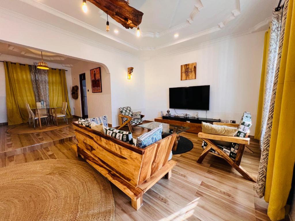 O Retiro da Cidade Njiro Round em Arusha oferece uma espaçosa casa de férias com três quartos e três banheiros. Desfrute de uma cozinha compacta totalmente equipada, estacionamento gratuito no local e comodidades modernas, incluindo uma área de recreação interna e estacionamento de bicicleta. Situados a 16 km do aeroporto de Arusha, os hóspedes podem explorar atrações próximas, como Njiro Complex, Old Aleman Boma e Meserani Snake Park a 35 km. Este local torna conveniente para viajantes que buscam um refúgio relaxante cercado pela natureza.