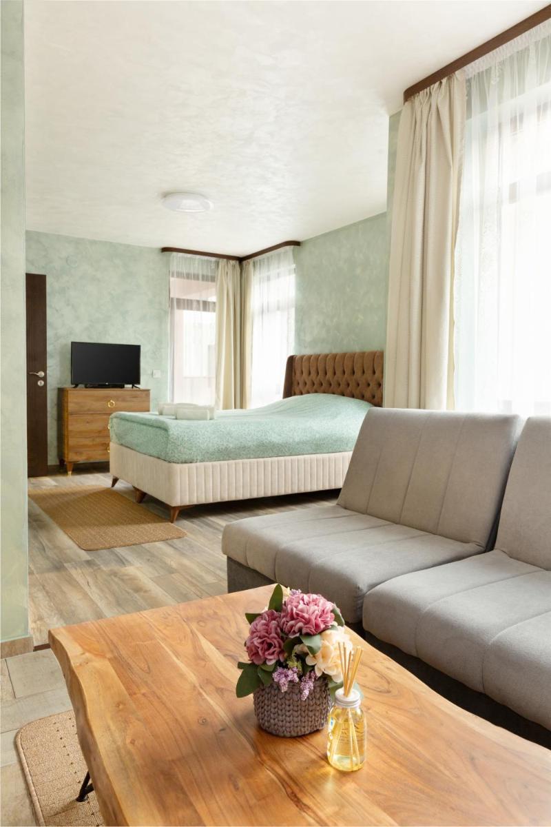 A propriedade também atende às famílias, fornecendo uma área de recreação infantil dedicada. Os entusiastas do esqui têm a opção de alugar equipamentos na porta, com fácil acesso a encostas próximas. O Aeroporto Internacional Plovdiv fica a aproximadamente 66 km de distância, tornando este local ideal para viajantes que desejam explorar destinos locais e internacionais dentro de um raio conveniente.