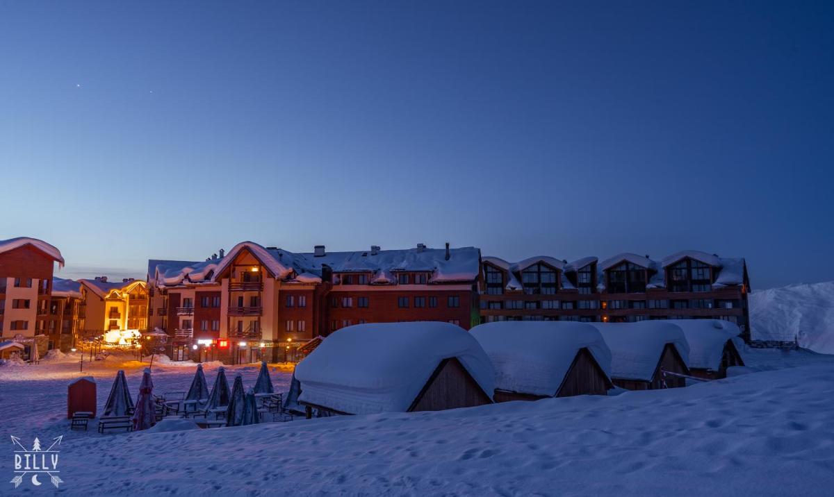 O novo apartamento Gudauri Red-Co, Loft 2, oferece acomodações luxuosas em Gudauri. Esta residência principal apresenta um serviço de concierge de 24 horas de última geração e um elevador eficiente. Os hóspedes desfrutam de cobertura Wi-Fi de cortesia nas instalações, garantindo conectividade perfeita durante a estadia. O apartamento possui dimensões espaçosas, medindo 30 metros quadrados, oferecendo amplo conforto e conveniência.