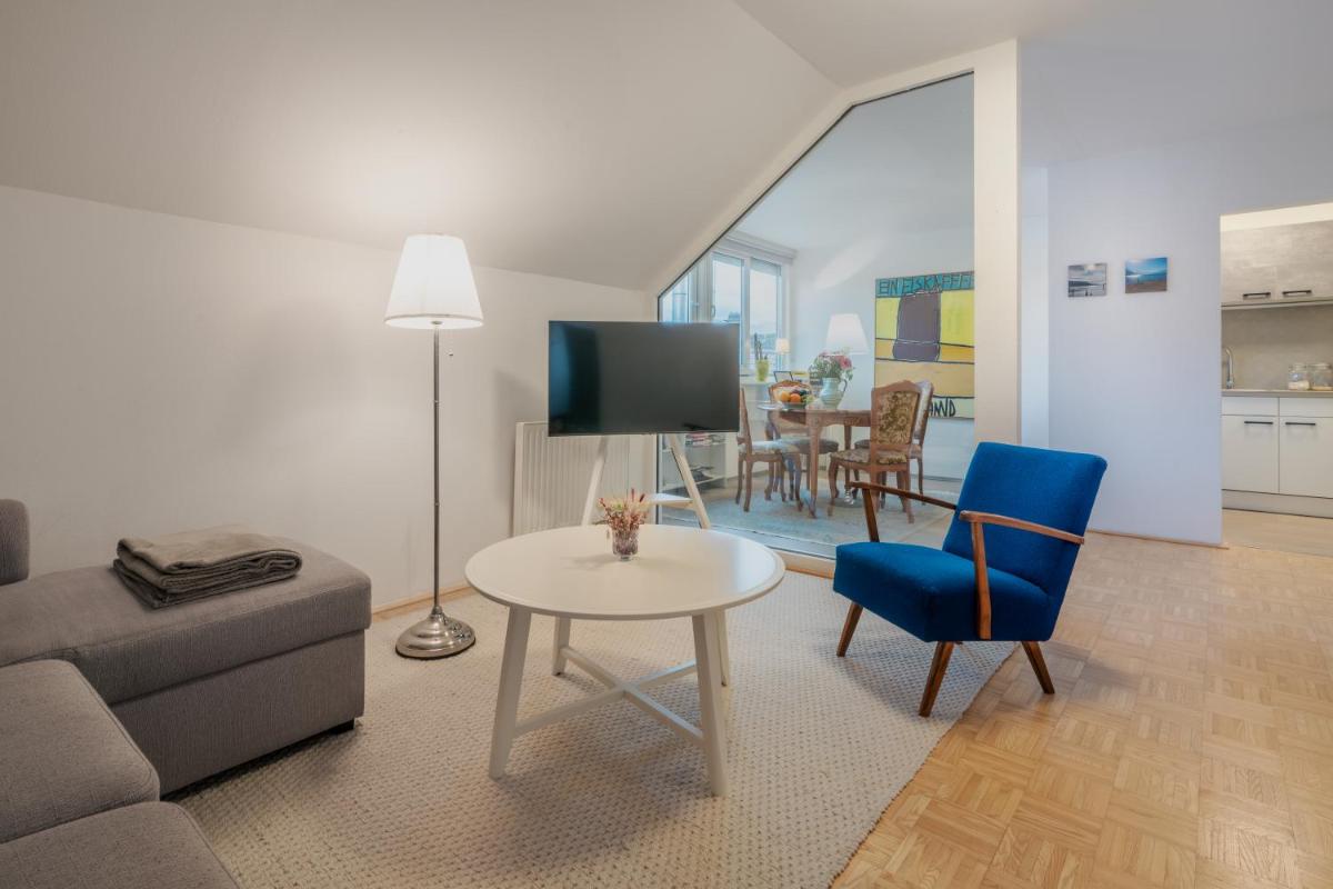 O apartamento na cobertura, exclusivo City and Mountain View, localizado em Gmunden, possui vistas panorâmicas deslumbrantes da agitada paisagem urbana e das majestosas montanhas. Situada a apenas 31 quilômetros do renomado centro de exposições Ried e a 21 quilômetros do complexo histórico do castelo conhecido como Kaiservilla, esta residência luxuosa oferece uma experiência incomparável para quem procura uma mistura de sofisticação urbana e tranquilidade rural.