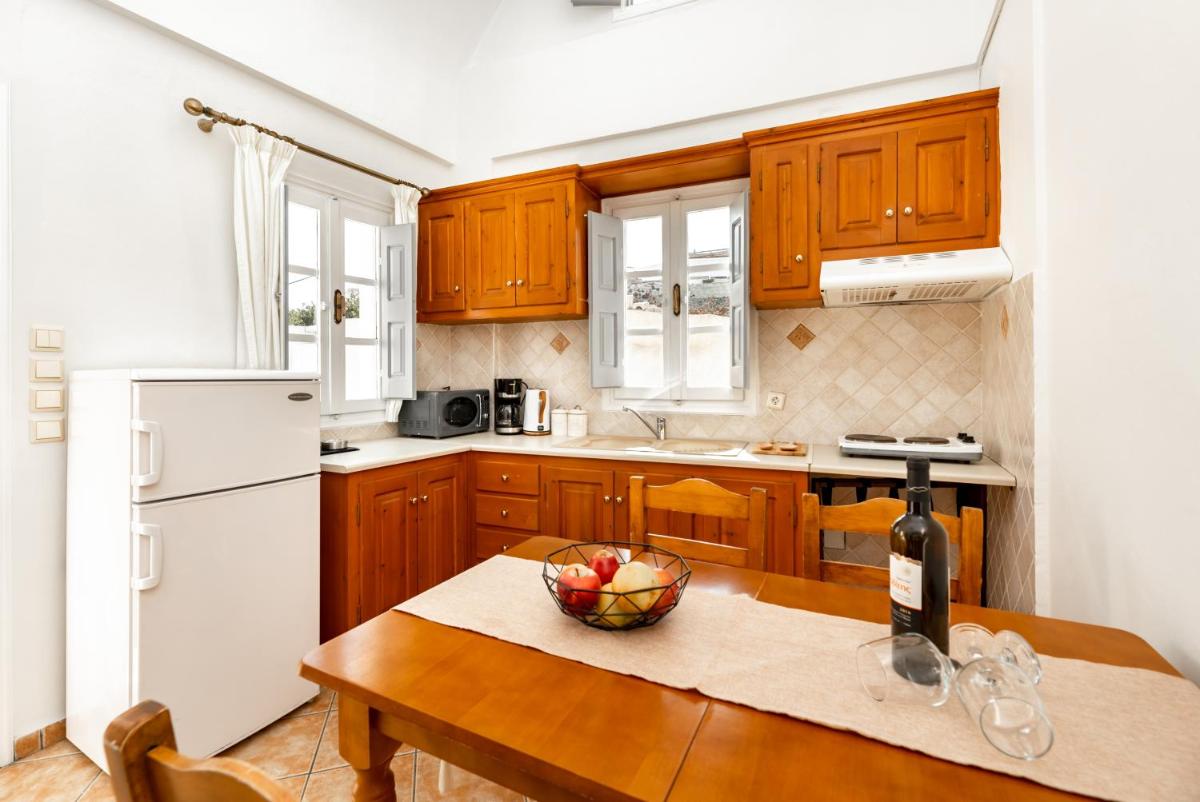 Elevados acima das ruas movimentadas de Fira, Villa by Hotel Thrya, a poucos passos da vista deslumbrante do mar. Os hóspedes podem facilmente acessar sua vila através de uma entrada privada, garantindo uma fuga pacífica em meio à vida vibrante da ilha.